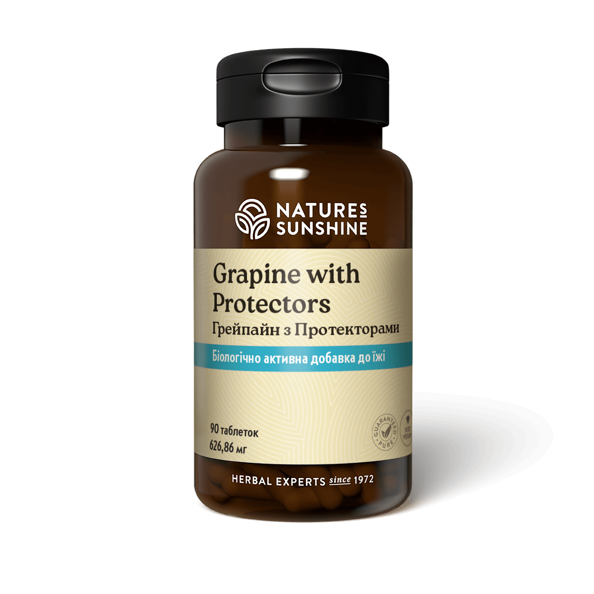 Грепайн з Протекторами є комплексом екстрактів зі шкірки й кісточок винограду (grape) і із соснової кори (pine), що мають дуже високу антиоксидантну активність. Продукт містить біофлавоноїди цитрусових, гесперидин, вітамін С, які є антиоксидантами, та комплекс із 8 висушених рослин, що підсилюють дію антиоксидантів. Грепайн з Протекторами захищає клітинні мембрани, зміцнює стінки кровоносних судин та поліпшує периферичний кровообіг. Захищає клітинні мембрани та судини від антиоксидантного стресу. Має ранозагоювальну, антисептичну дію. Може бути використаний як онкопротектор (рак шкіри, грудей, підшлункової залози, меланома).